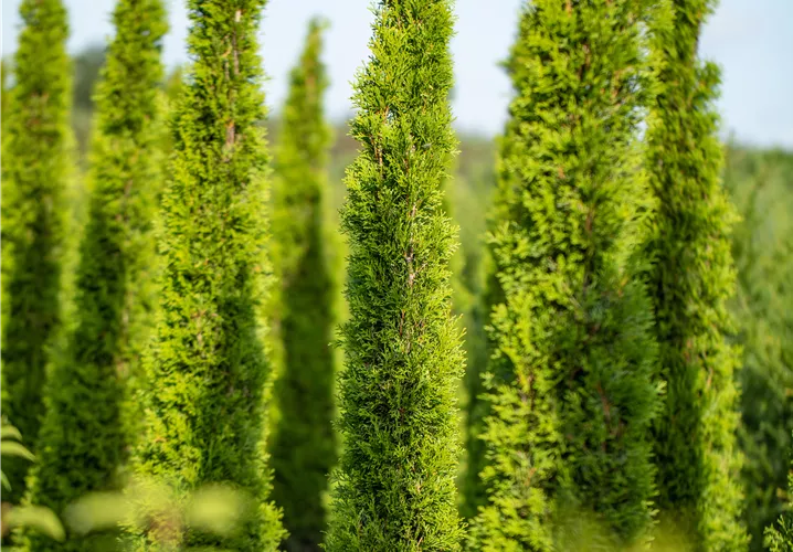 Unter optimalen Bedingungen ein sehr langlebiger und rasch wachsender Baum. Schmaler, raketenförmiger Wuchs mit straff am Stamm anliegenden Ästen, 8-10 m hoch und 1,5-2 m breit werdend, in der Heimat 20-30 m hoch.