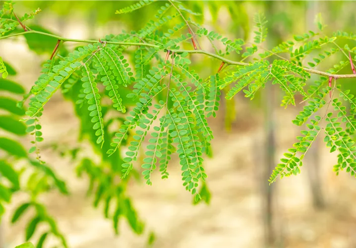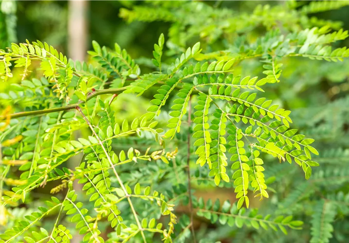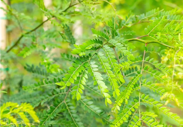 sommergrün, Austieb rotbraun, spät, frischgrün, gefiedert, wechselständig, etwa 15 - 20 cm