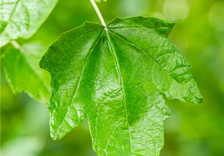 sommergrün, dunkelgrün, unterseits filzig, 3-5lappig, gezähnt, wechselständig, etwa 6 - 12 cm