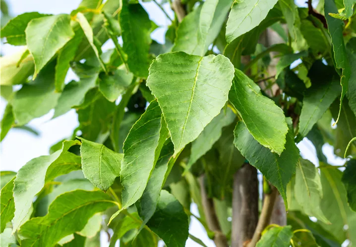 Deciduous, late sprouting, fresh green, pinnate, serrate, opposite, about 20 - 40 cm