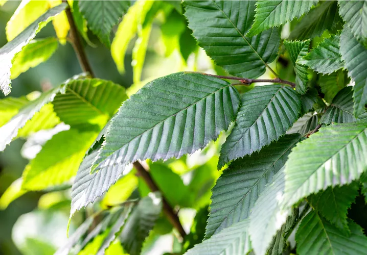 caduques, vert moyen, ovales, sciées, alternes, environ 5 - 10 cm, tombent tard