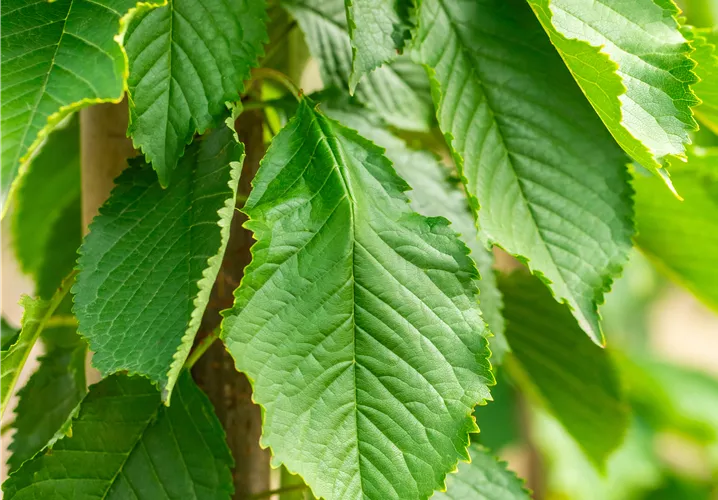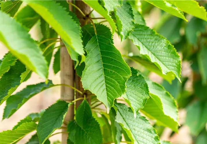 caduques, vert moyen, ovoïdes, sciées, alternes, environ 10 - 15 cm