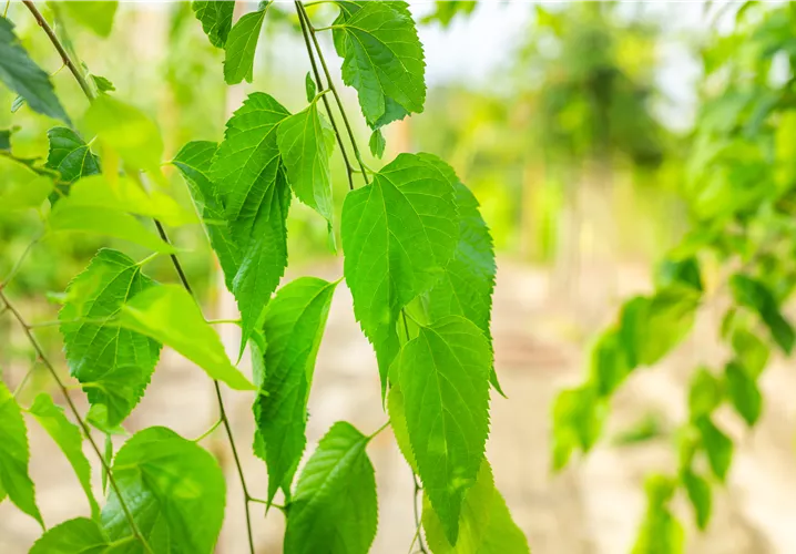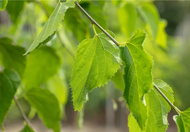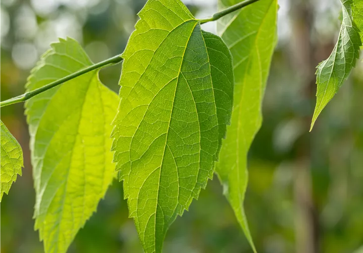 caduques, vert moyen, ovoïdes, sciées, alternes, environ 5 - 15 cm