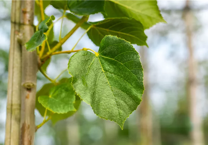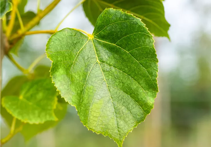 caduques, vert foncé, brillantes, cordiformes, alternes, environ 8 - 10 cm, tombent tardivement