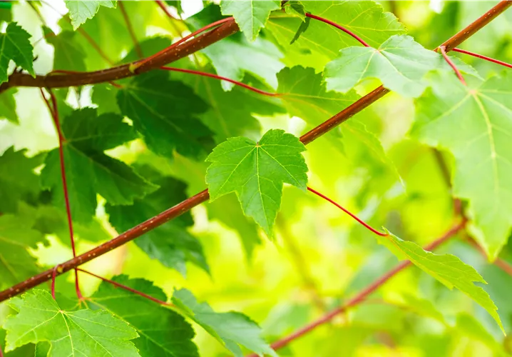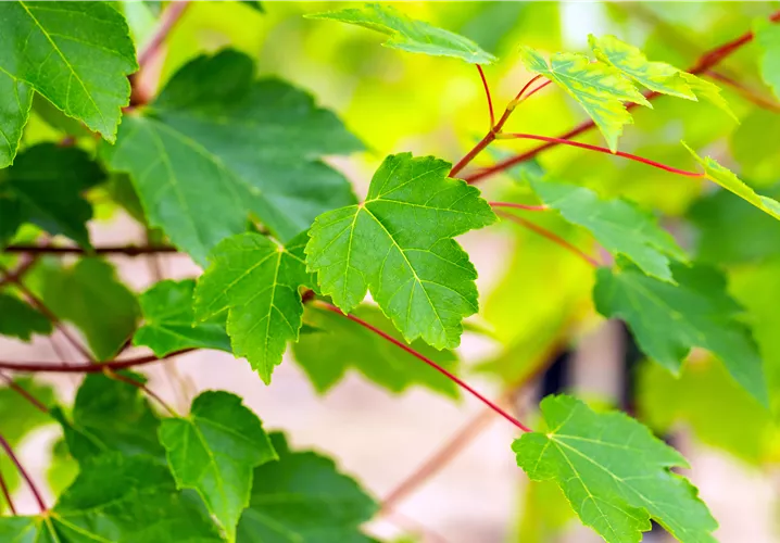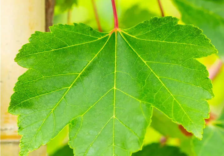 Листопадные, средне-зеленые, 3-5 лопастные, противоположные, около 6 - 10 см, опадают поздно