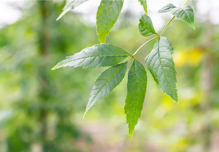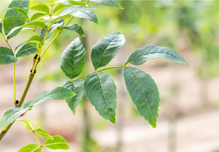 листопадный, матово-зеленый, перистый, противоположный, около 30 - 40 см.